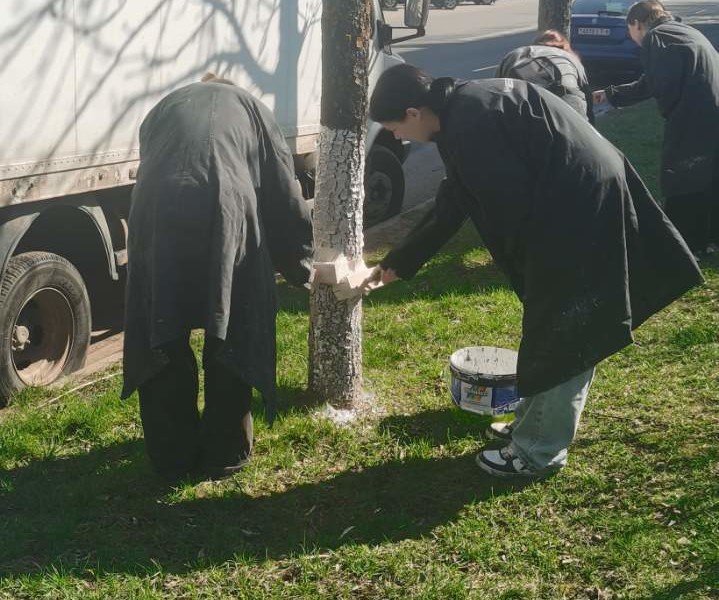 17 апреля активисты колледжа приняли участие в акции по благоустройству любимого города и побелили деревья по улице Интернациональной.